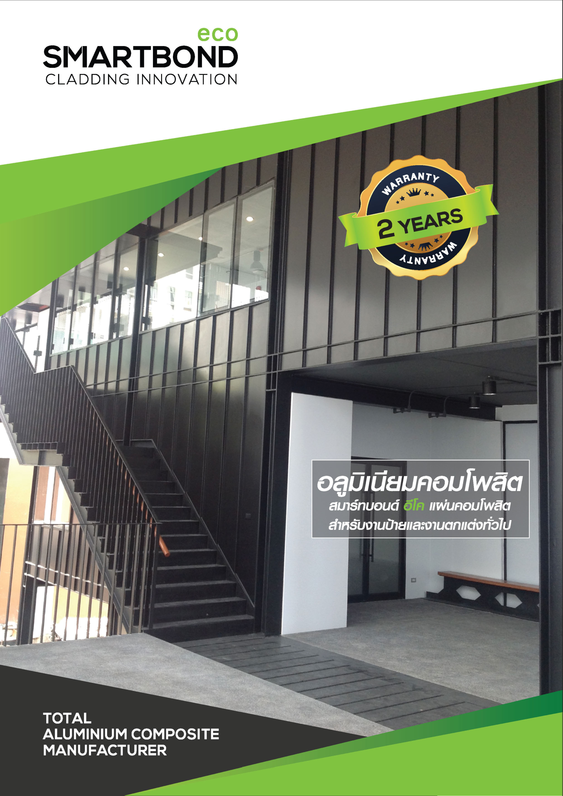 SIAMBOND เป็นวัสดุประกอบด้วยพลาสติก และแผ่นอลูมิเนียม 2 แผ่นประกบไส้กลาง PE แบบ Non – Toxic